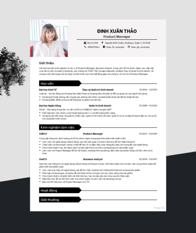 Các chuyên viên tuyển dụng có xu hướng tập trung vào ba phần trên cùng trong trang đầu tiên của CV. Họ chỉ tiếp tục đọc nếu hồ sơ của bạn thật sự bắt mắt và nhanh chóng thu hút sự chú ý. Hãy liệt kê các ví dụ mạnh mẽ và nhất quán để chứng minh khả năng của bạn trong việc như thúc đẩy tăng trưởng và duy trì hoạt động sản xuất/ kinh doanh của công ty chẳng hạn.